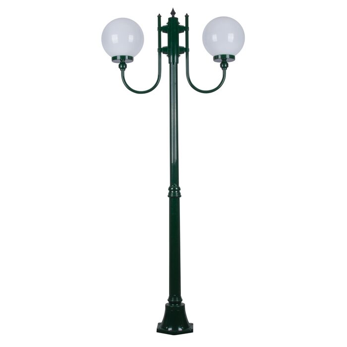 Lisbon Twin Head 25cm Sphere Curved Arm Medium Post Light Green - 15713