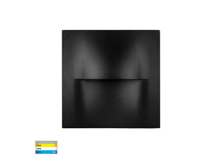 The HV3228T-BLK-12V is a square, black, 12V LED wall light from Havit Lighting's "Lisca" series, suitable for both indoor and outdoor use.