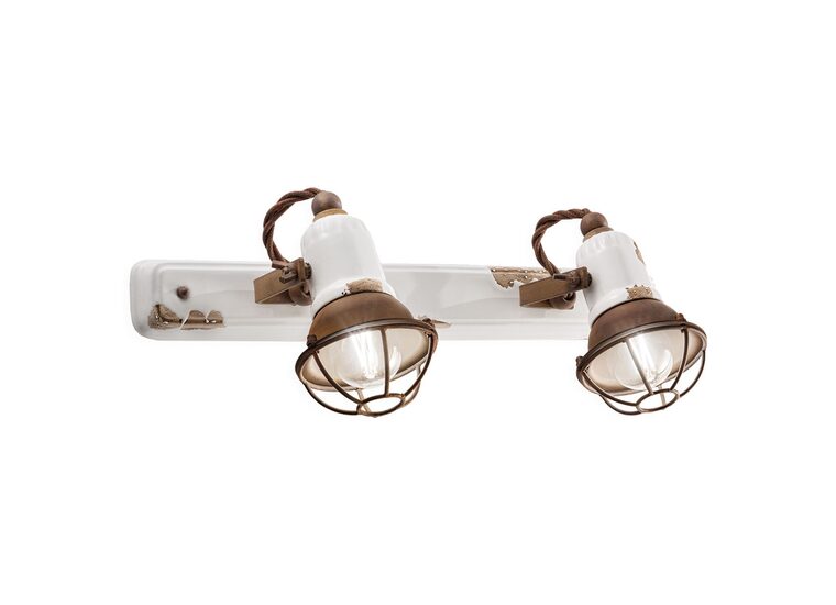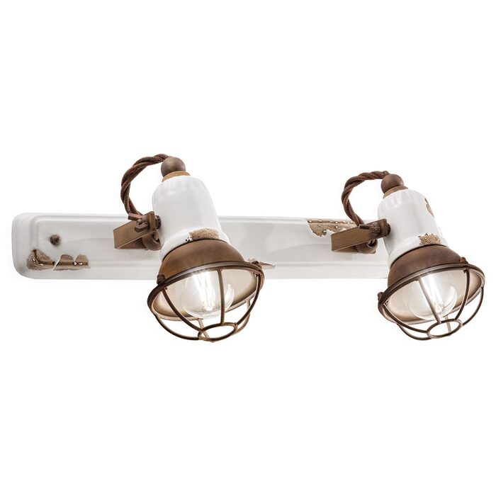 The Loft 2 Light Wall Light with Metal Guard in Vintage White by Ferroluce combines industrial style with durable ceramic and metal.