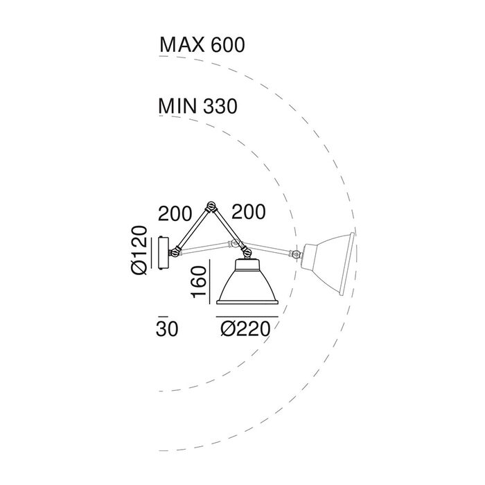 Underlining the styles of these lamps, the arm uses a system of joints that allows for double movement from top to bottom and left to right.