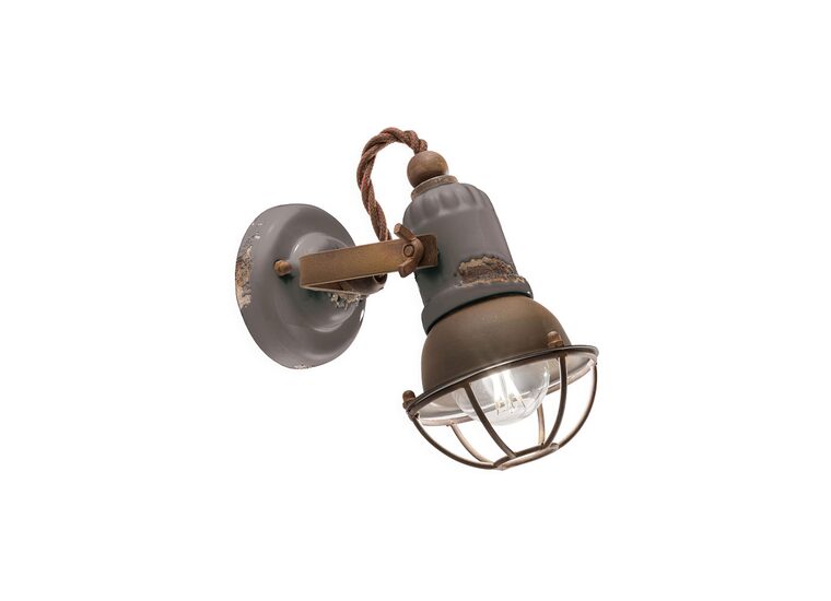 The Loft 180mm Wall Light in Vintage Dove Grey by Ferroluce blends ceramic and metal for a sleek, industrial look.
