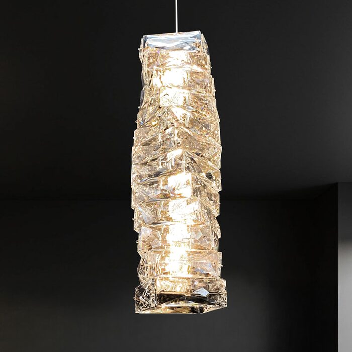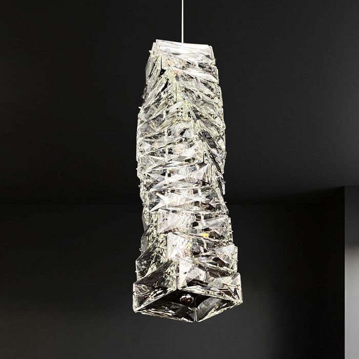 This elegant modern crystal pendant has a built-in LED and makes a great statement piece that will mesmerise anyone.