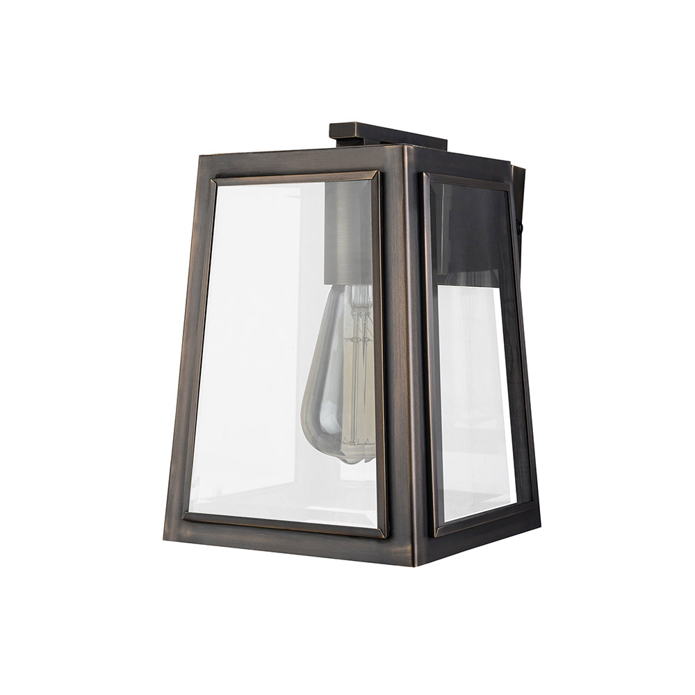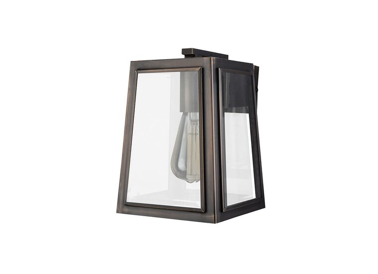 The bold black frame and clear glass panels showcases the bulb within, casting a bright and welcoming light.