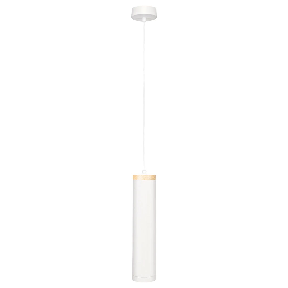 - Matt white with faux wood detail pendant light with pvc cord