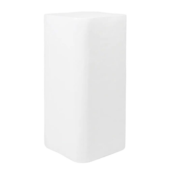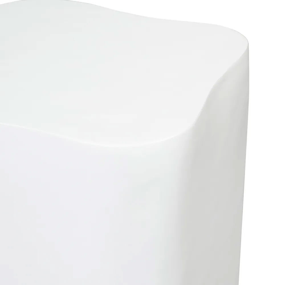 The Lucca Plinth showcases a sculptural silhouette crafted from concrete with a semi-gloss finish, offering a sleek yet organic appeal.