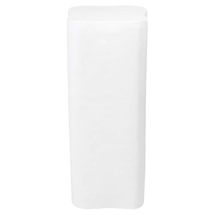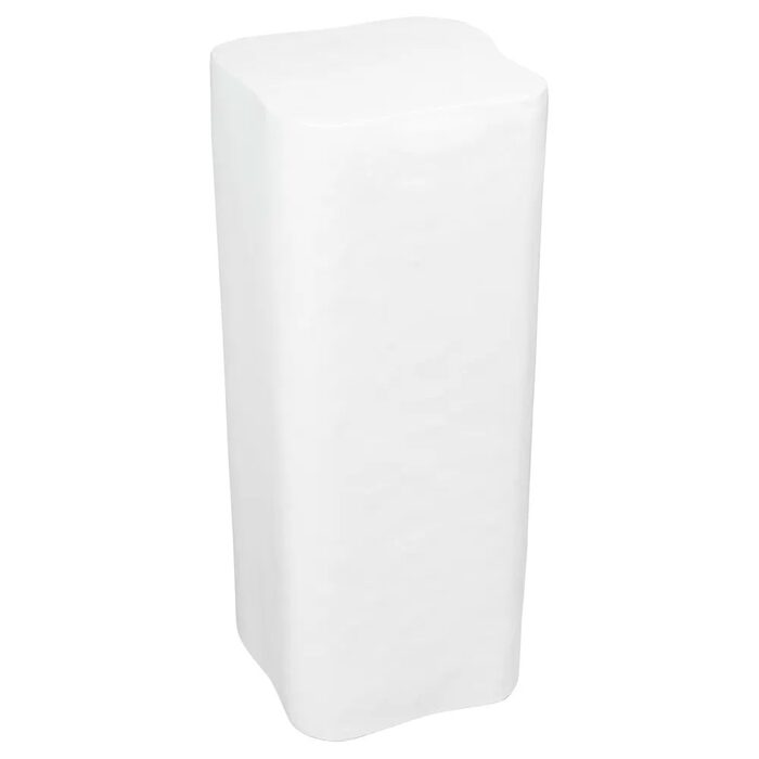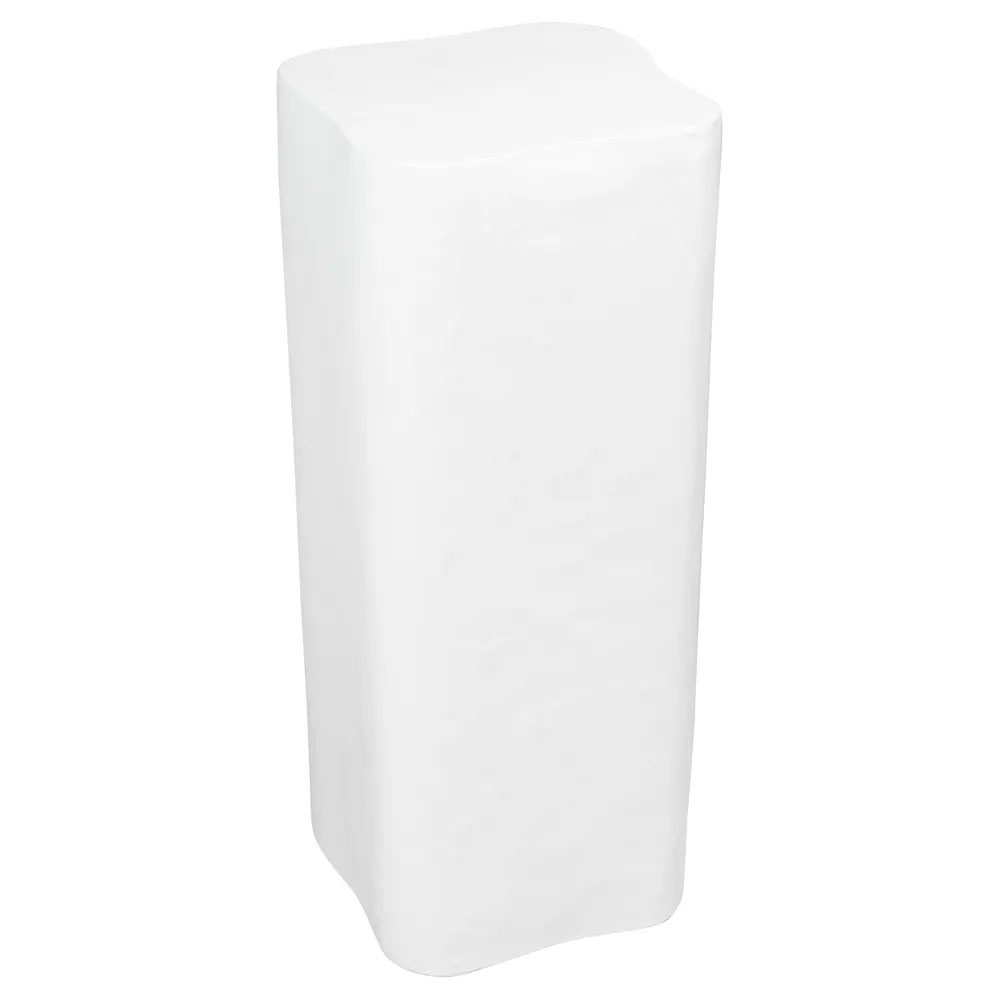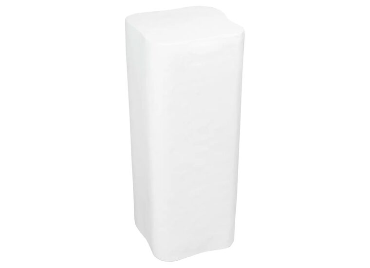 The Lucca Plinth showcases a sculptural silhouette crafted from concrete with a semi-gloss finish, offering a sleek yet organic appeal.