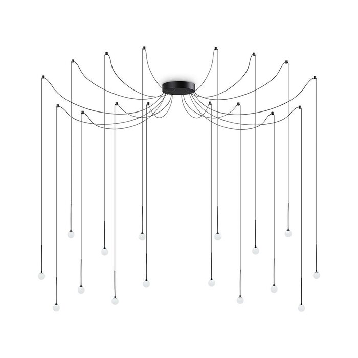 Its small satin acrylic spheres, available in the model with 8 and 16 light points, create a rain effect that will illuminate and embellish your living room.