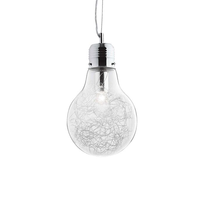 Transparent blown glass diffuser with decorative aluminium thread inside. Diameter: Ø 220 mm.