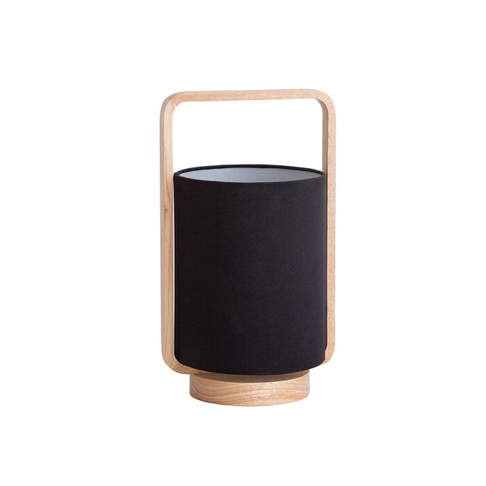 Sweet LUCIA table lamp features a curved natural timber frame encasing a cotton fabric lamp shade.