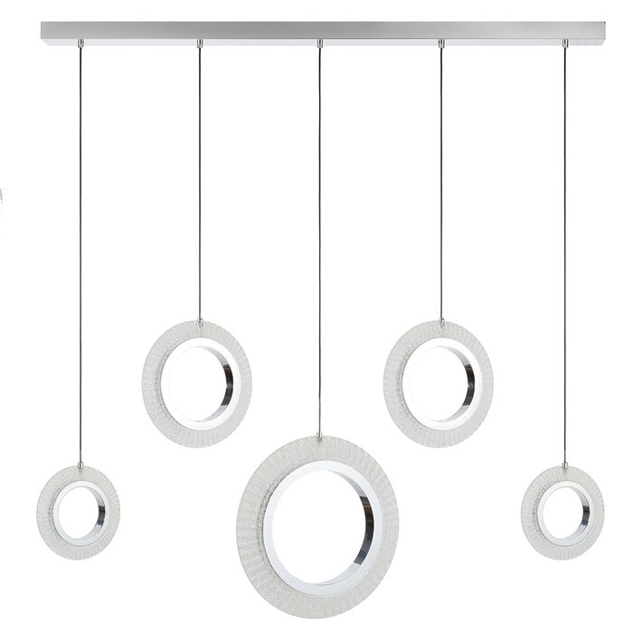 Hanging from the central ceiling canopy, unique facetted clear outer rings create an enchanting play of light, making it an ideal statement piece for various rooms.