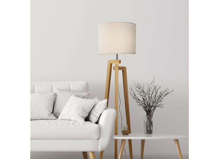 Supplied with a stylish drum, poly cotton hard-backed shade in white, LUND is a lovely choice for a living room.