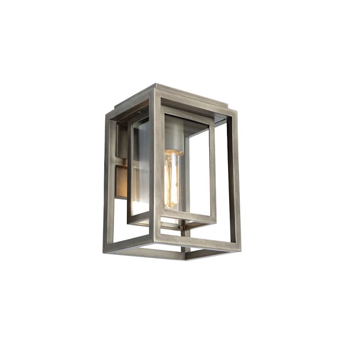 The Luton Exterior Wall Light in Old Bronze & Clear by Cougar Lighting features a sleek design with a clear glass shade that offers bright, even illumination.