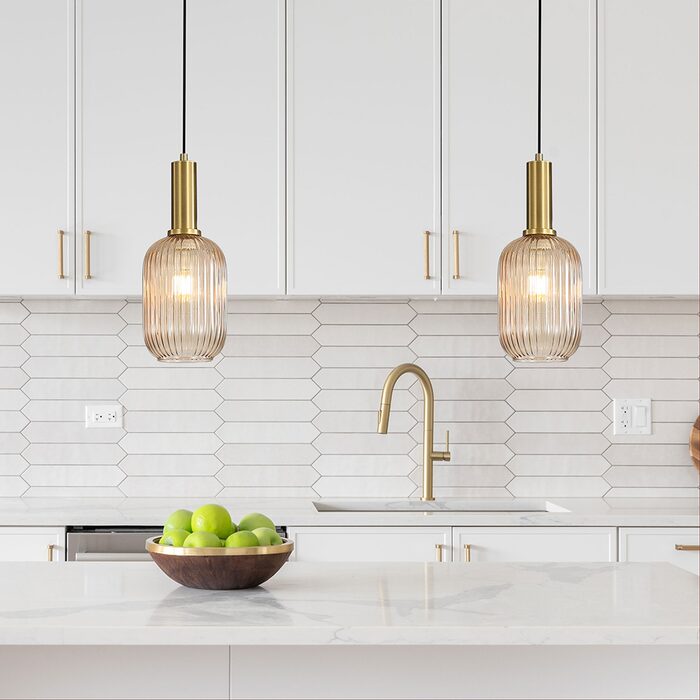 LUXE.130 Ribbed Glass Pendant Amber - OL63751/13AM