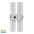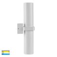 The HV10392T is the Havit Luz double up & down wall pillar light, a modern, architectural outdoor fixture made of white powder-coated aluminium.