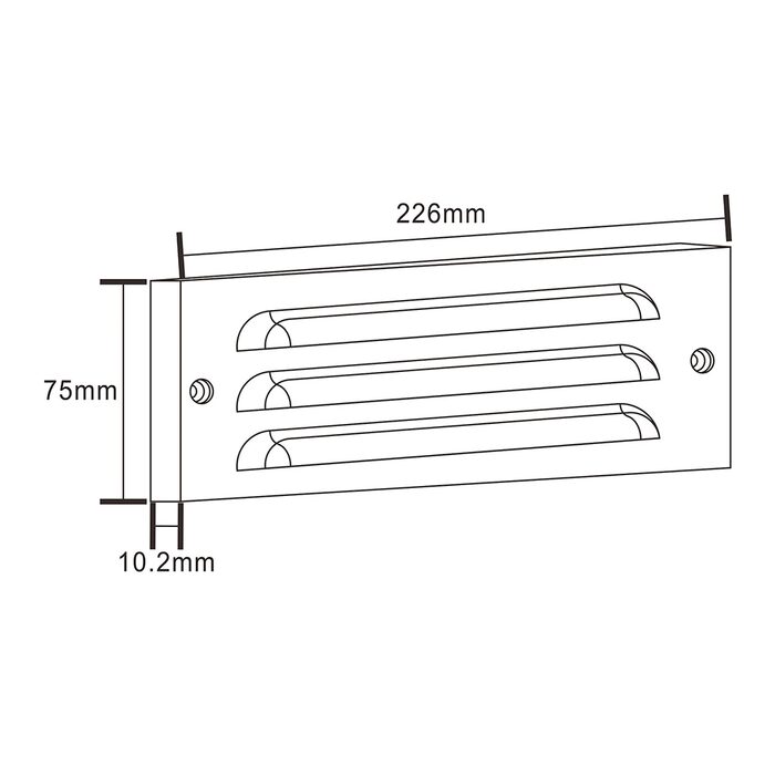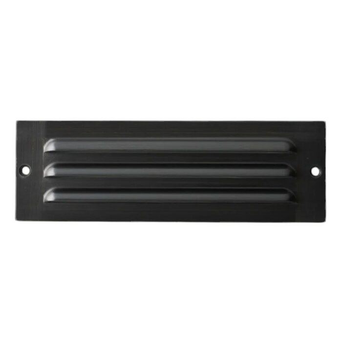 Surface mount, low profile, slotted steplight for step risers, pathways and corridors.