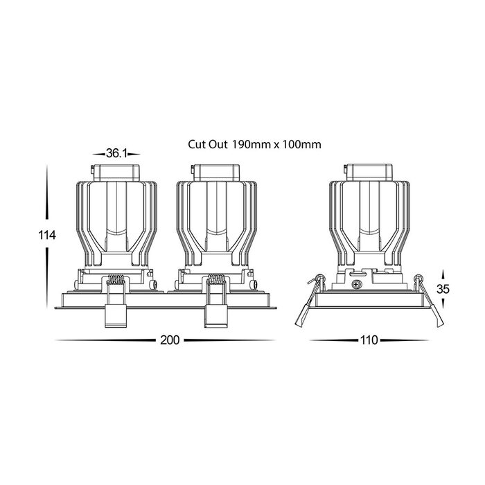 The Lyra Rectangular Tilt 2 x 17W Recessed LED Downlight are a plug and play LED lamp module and LED driver set.