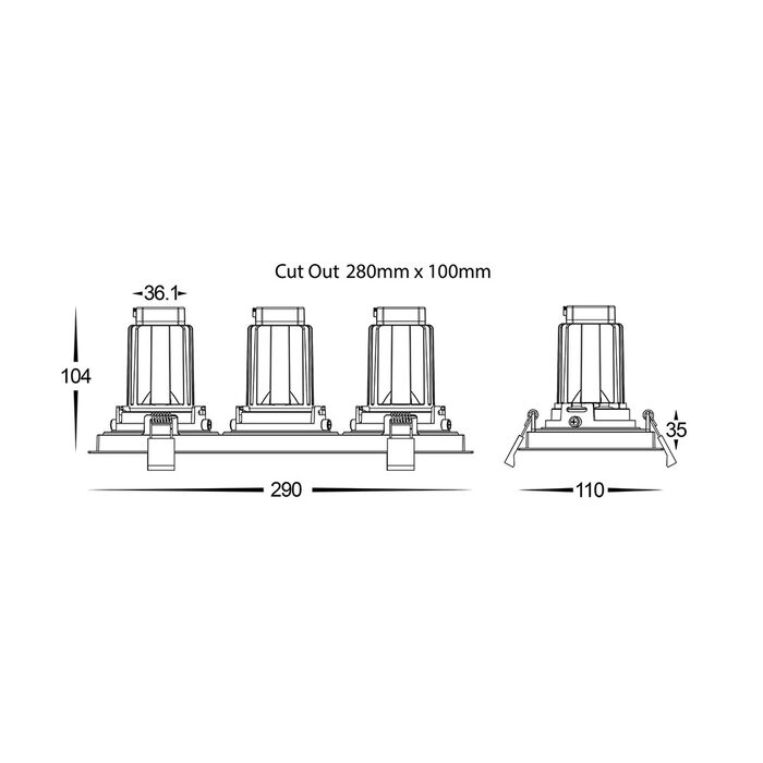 - Cut-out: 280mm x 100mm