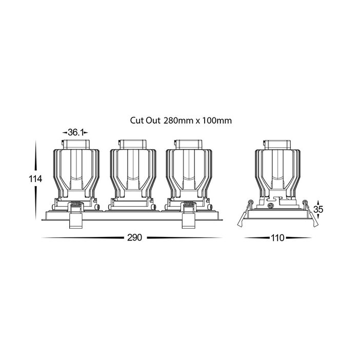 The Lyra Rectangular Tilt 3 x 17W Recessed LED Downlight are a plug and play LED lamp module and LED driver set.