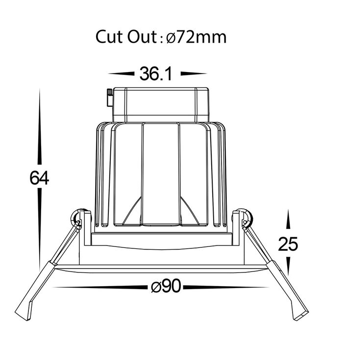 - Cut-out: 72mm