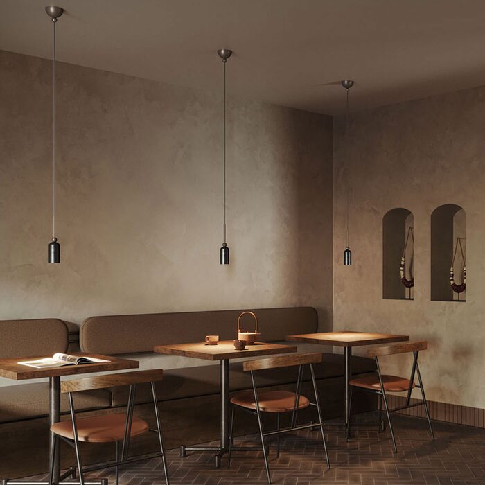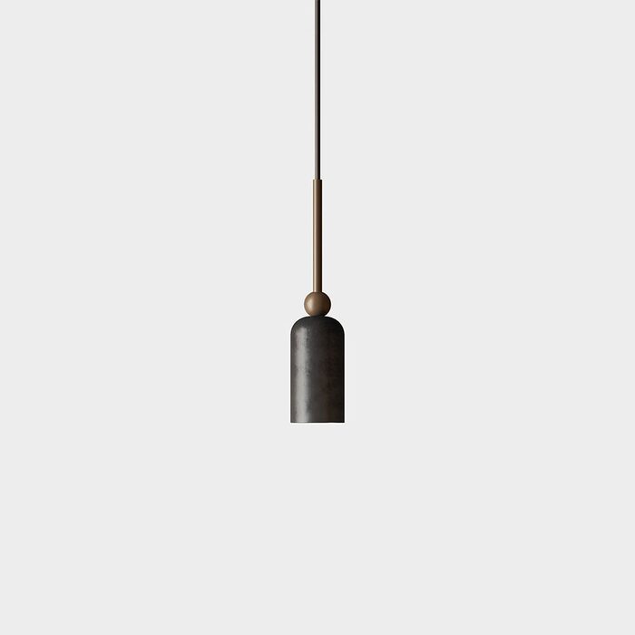 Madame is available in natural brass or a two-tone version (body in Morocco and head in Grafene) as a pendant (single or double), wall or spotlight.