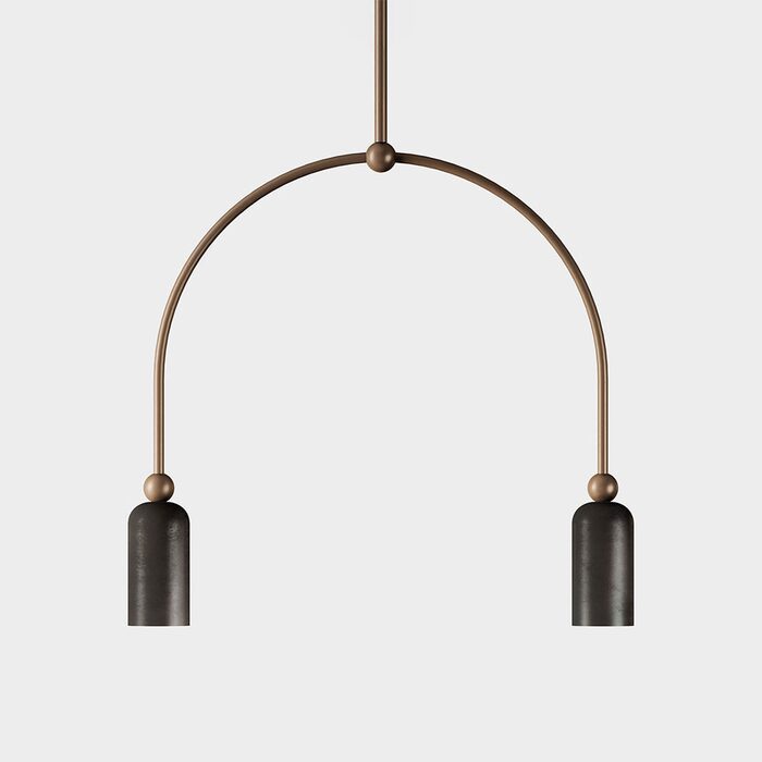 Madame is available in natural brass or a two-tone version (body in Morocco and head in Grafene) as a pendant (single or double), wall or spotlight.