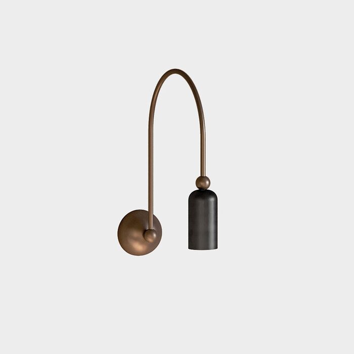 Madame is available in natural brass or a two-tone version (body in Morocco and head in Grafene) as a pendant (single or double), wall or spotlight.