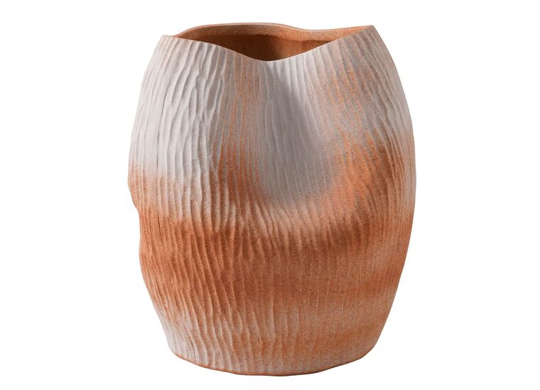 Elevate your interior with this uniquely textured decorative vase, featuring an organic form and earthy tones.