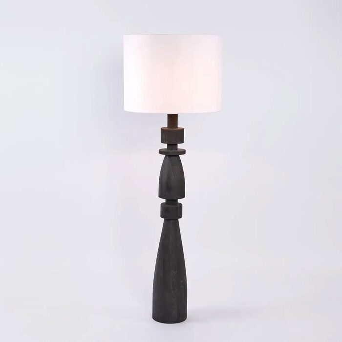 Magnus Wood Floor Lamp Black Base With White Shade - KITMRDLMP0060WH