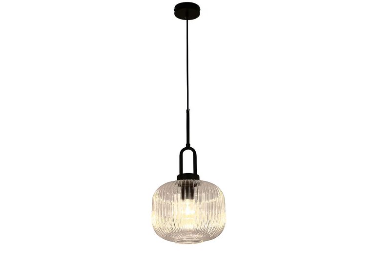 Showcasing a distinctive round clear ribbed glass shade, this pendant brings dimension, character, and a touch of sophistication to any interior.