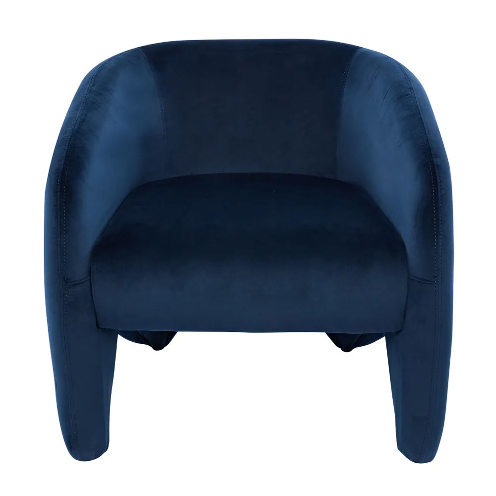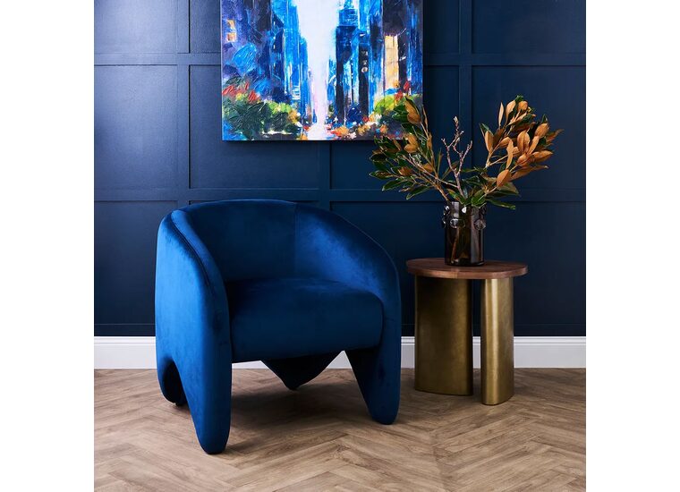 Upholstered in a rich, sumptuous indigo velvet, this versatile contemporary chair blends effortlessly into apartment and smaller space living.