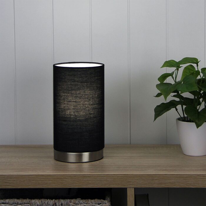 MANTEL features a brushed chrome ON-OFF touch base with a coloured poly-cotton fabric shade. It is the perfect addition to any bedside table.