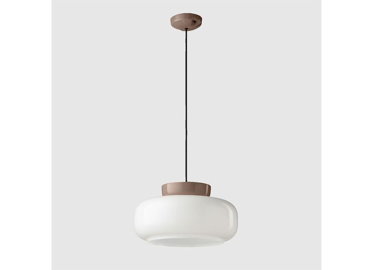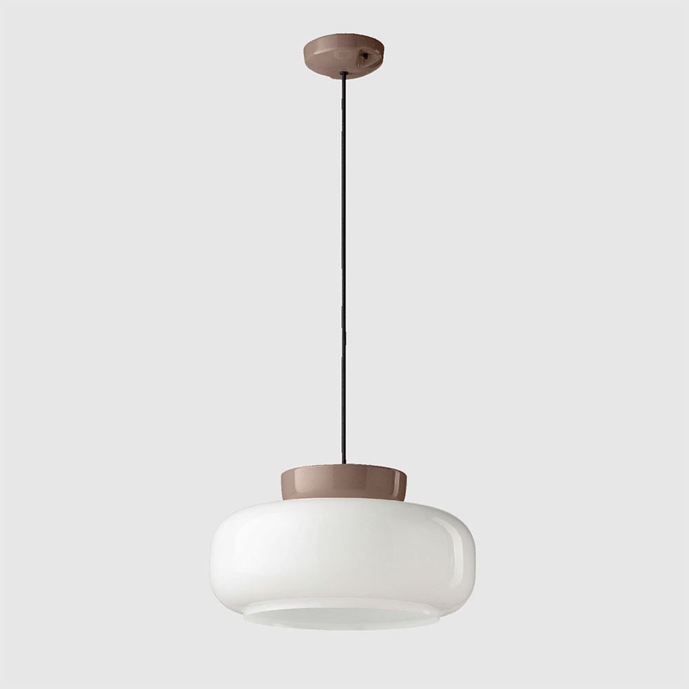Maracanà Pendant Light by Ferroluce is a luminous marvel that seamlessly blends ceramic and painted natural glass, forming a striking two-tiered shade.