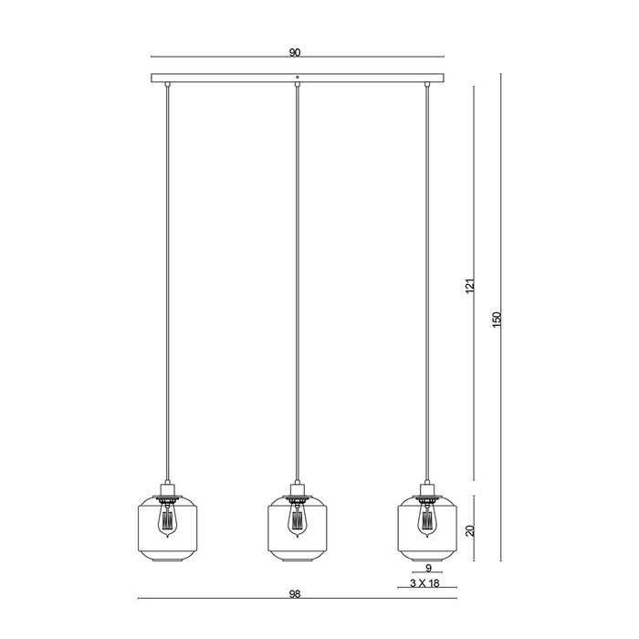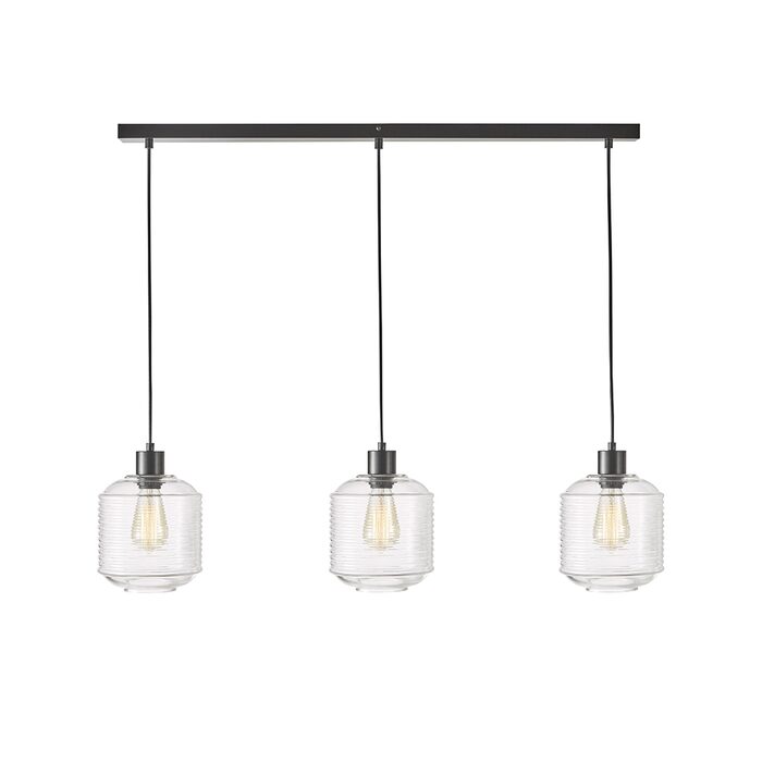 This 3 light arrangement is perfect for use over a kitchen island or dining table. The opening in the bottom of the shade allows for easy bulb access. Suspension length can be reduced by the installing electrician.