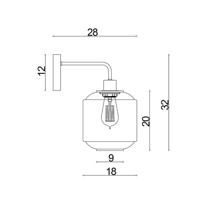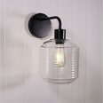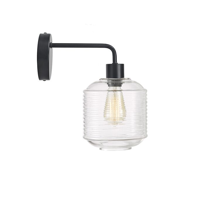 The simple styling of the black metal wall bracket contrasts well with the decorative clear glass shade. The opening in the bottom of the shade allows for easy bulb access.