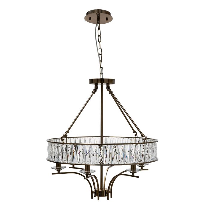 An 6 light drum ceiling pendant with lavish baguette cut faceted crystals. It's a little different from the normal crystal offering as the sparkling gems are set in a bronze finish.