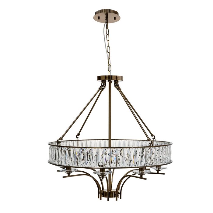 An 8 light drum ceiling pendant with lavish baguette cut faceted crystals. It's a little different from the normal crystal offering as the sparkling gems are set in a bronze finish.