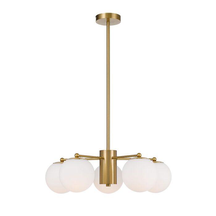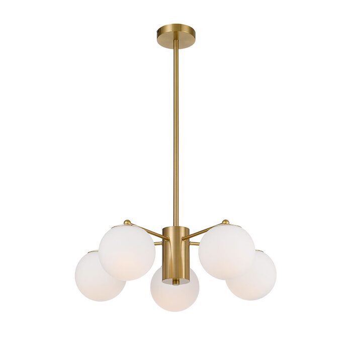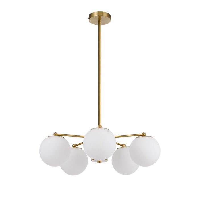Five straight rods, each with their own glass sphere give a starburst effect giving the fixture a unique character.