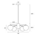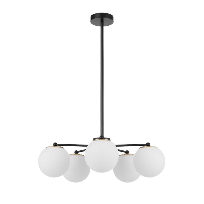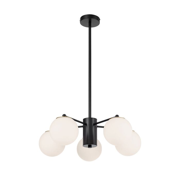 Five straight rods, each with their own glass sphere give a starburst effect giving the fixture a unique character.