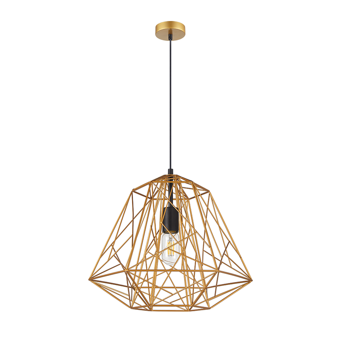 This Marte Matt Gold Cage Pendant Light is fitted with 1 x E27 lamp holder which looks fantastic with LED and carbon filament globes.