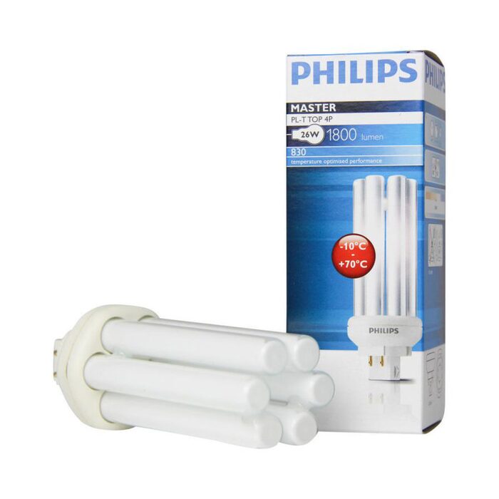 The Philips T/E Plus Lumilux PL-T 26W is an extremely economical lamp providing good quality light. Excellent luminous flux with long life and improved maintenance.