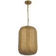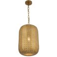 The Masya pendant light features an intricately perforated metal shade in an antique brass finish.