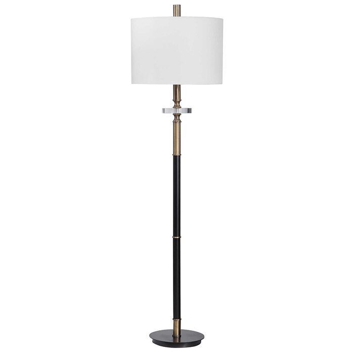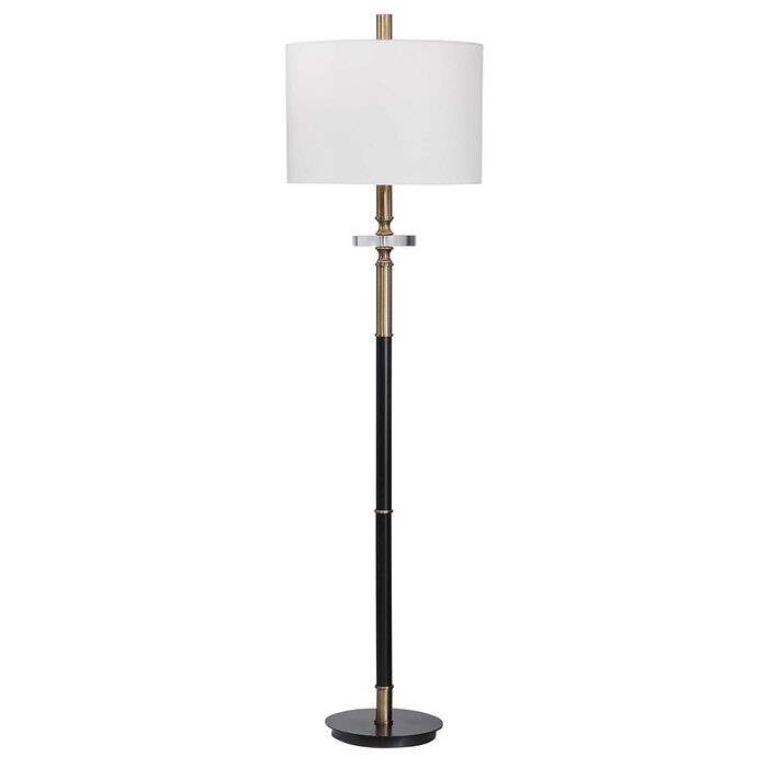 Traditional elegance is showcased in this floor lamp, finished in an aged black with antique brass plated accents and a thick crystal ornament.