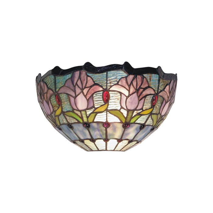 The Mauve Tulip wall lamp is a colourful Tiffany style lamp that combines many pieces of art glass to create a stunning and complex design.