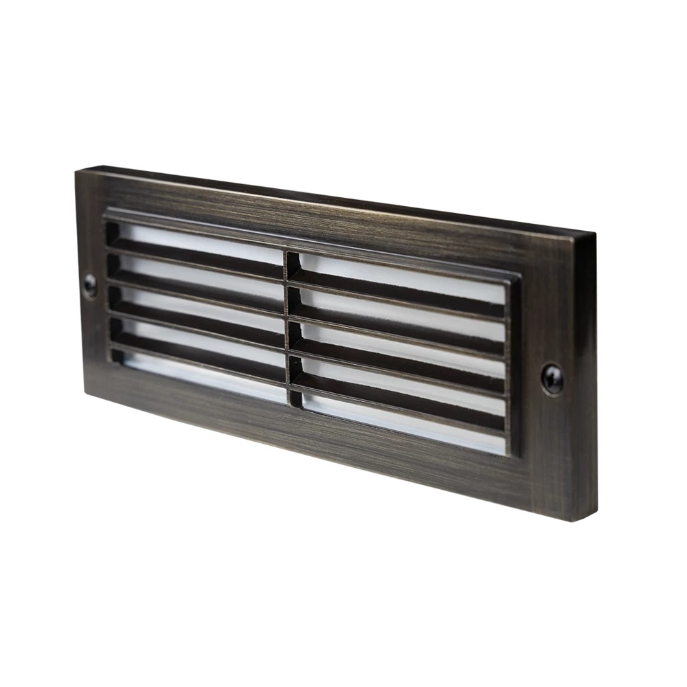 - Stylish ANTIQUE BRASS design, louvred optics