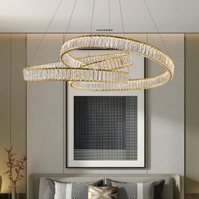 The Melody Crystal 1000 Pendant from Modern Lights offers a touch of luxury to any room.