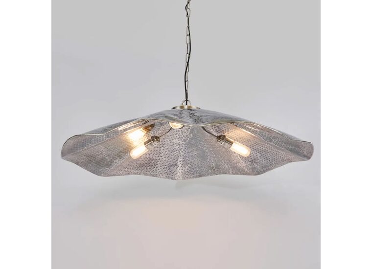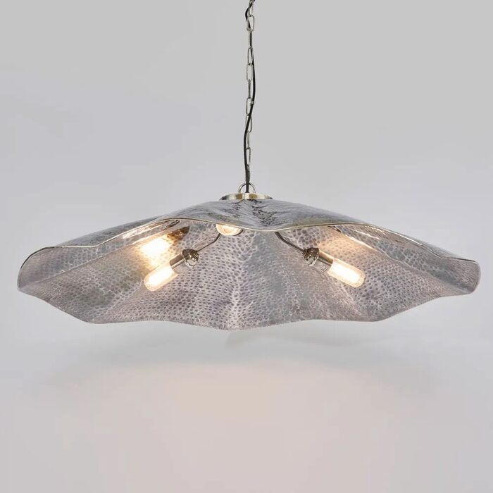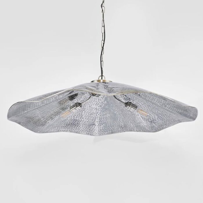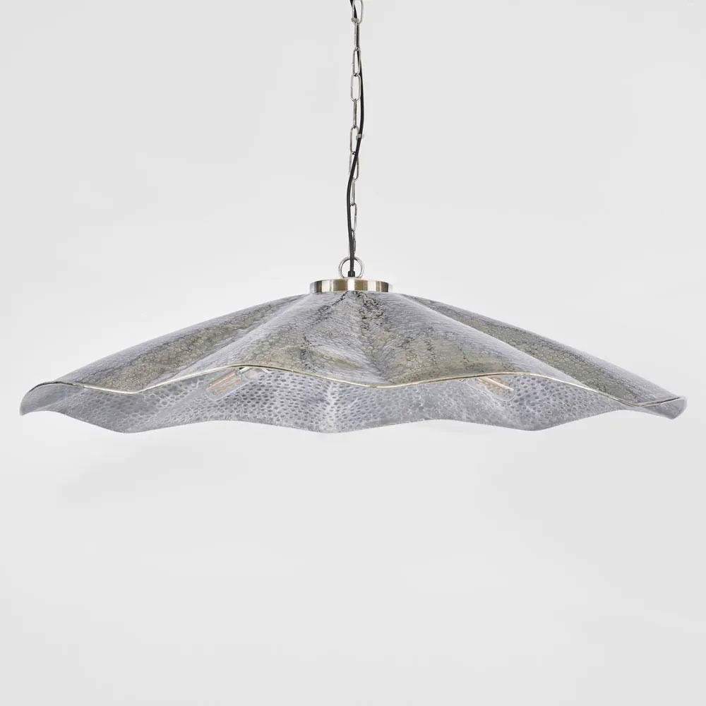 Its umbrella silhouette, adorned with wavy scalloped edges, casts a mesmerizing glow that dances with sophistication.