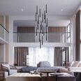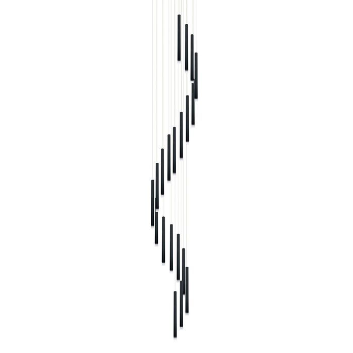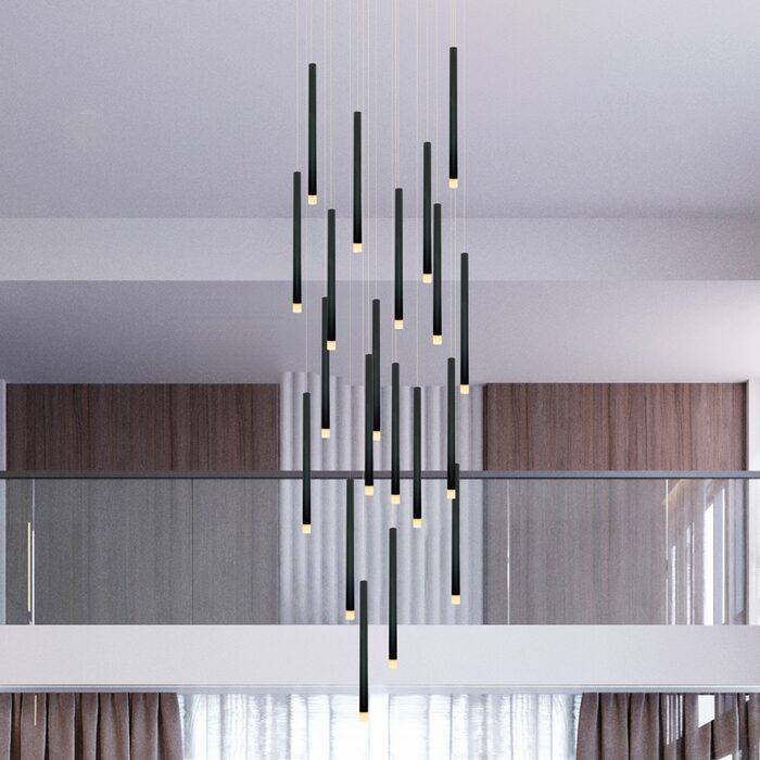 Featuring a sleek black finish, this pendant light includes 20 built-in LED bulbs that provide ample illumination while conserving energy.