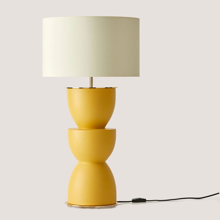 The design is very modern with geometric shapes and the tile ceramic base combined with the different stem colors (chrome, gold, black, white) create a perfect light for your projects.