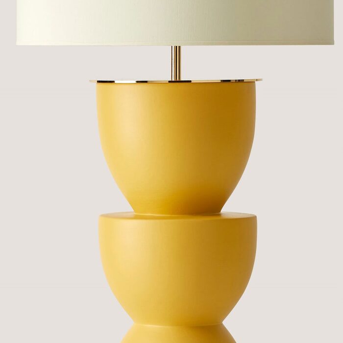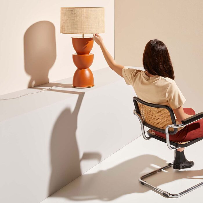 The design is very modern with geometric shapes and the tile ceramic base combined with the different stem colors (chrome, gold, black, white) create a perfect light for your projects.