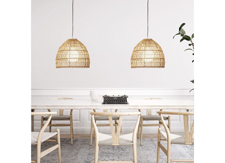 The spacious rattan weave and wide shade pairs perfectly with a decorative LED globe (available separately).